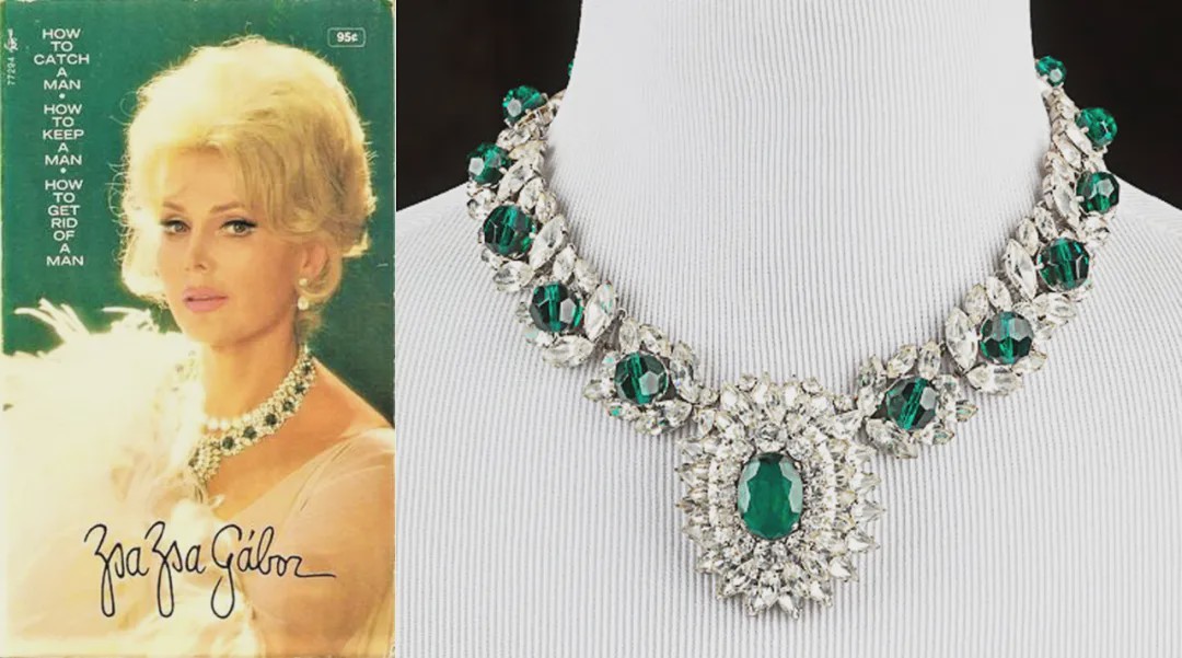 配上一袭绿色长裙,静坐林间的莎莎就像一只高傲的孔雀。驭夫有道的莎莎还曾出书分享自己的恋爱经,封面上的她就带着一串硕大的祖母绿钻石项链。