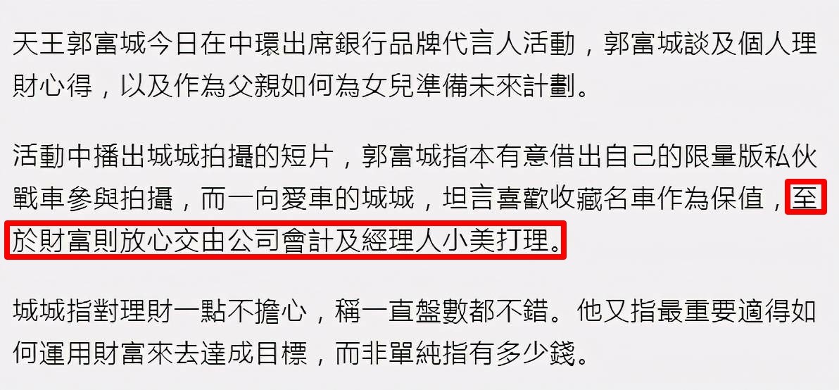 如果不是小美强悍,到处找律师媒体公关,不惜血本,神挡杀神,佛挡杀佛,力挽狂澜,那么,郭富城早就栽了。