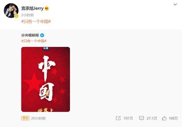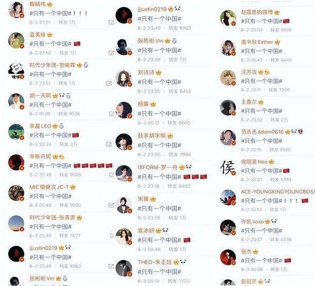近日,娱乐圈众多明星圈粉无数,都因有一颗爱国之心,纷纷转发“世界只有一个中国”。