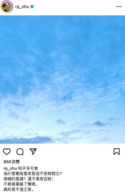 陈德修还在社交平台上发了一张蓝天白云的图片,并配文:和平可贵,不要故意制造不安与对立,倒霉的都是老百姓,希望不要被蒙蔽了双眼,真的是不速之客。