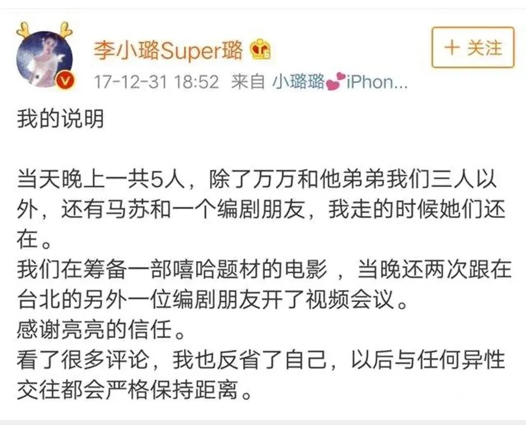 李小璐发微博澄清出轨事件