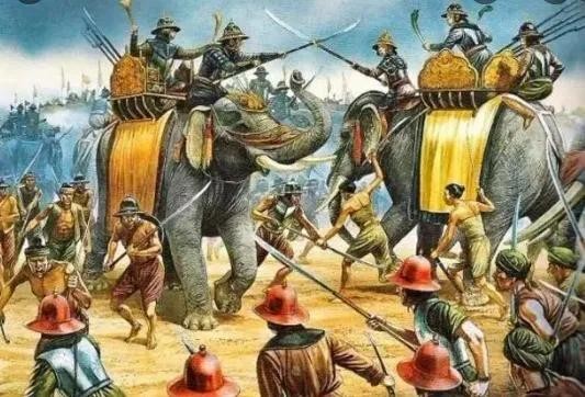 吞武里王朝开国元勋郑信大战缅甸军队画像