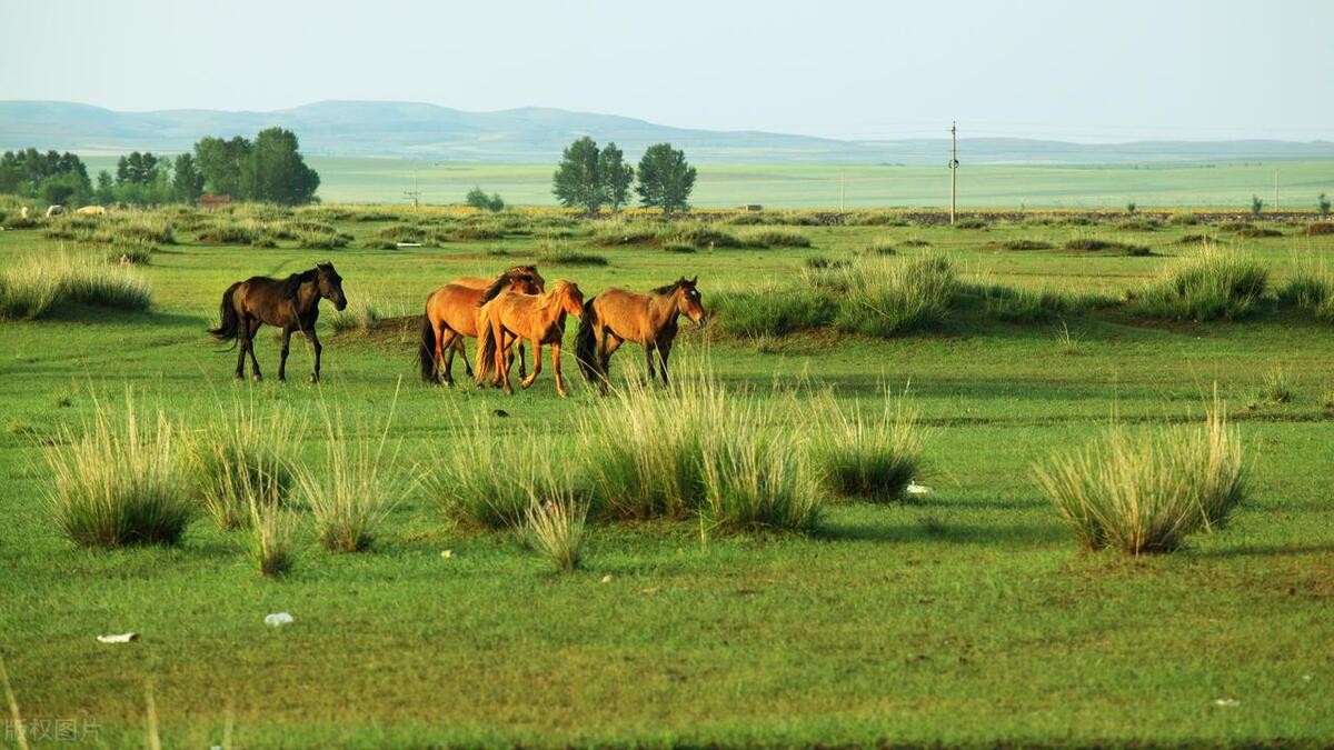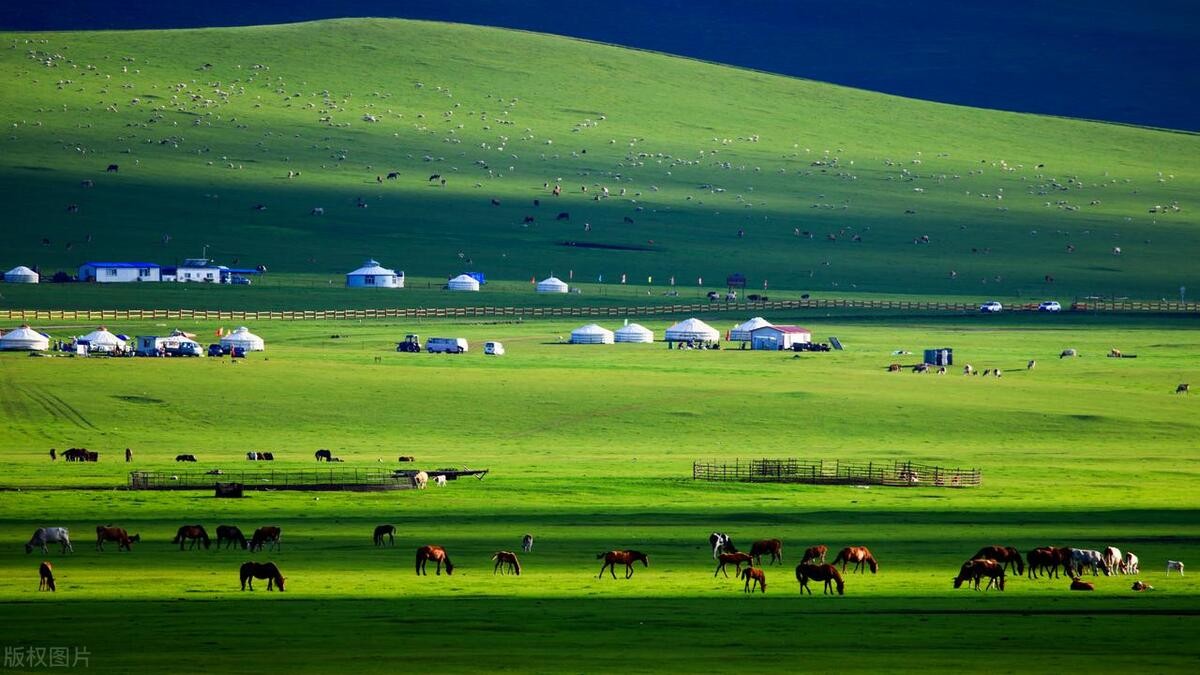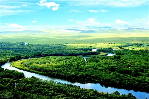 呼伦贝尔大草原是中国最美的草原之一,蓝天白云下,牛羊成群,马儿奔腾,构成了一幅动人的草原画卷。