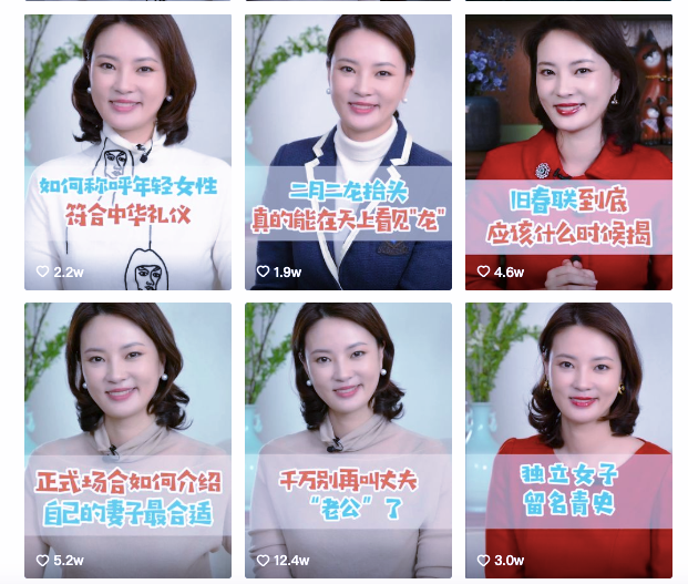 她利用自己的博学,在短视频平台上传播风俗习惯以及教大家一些社交礼仪等,十分受欢迎。