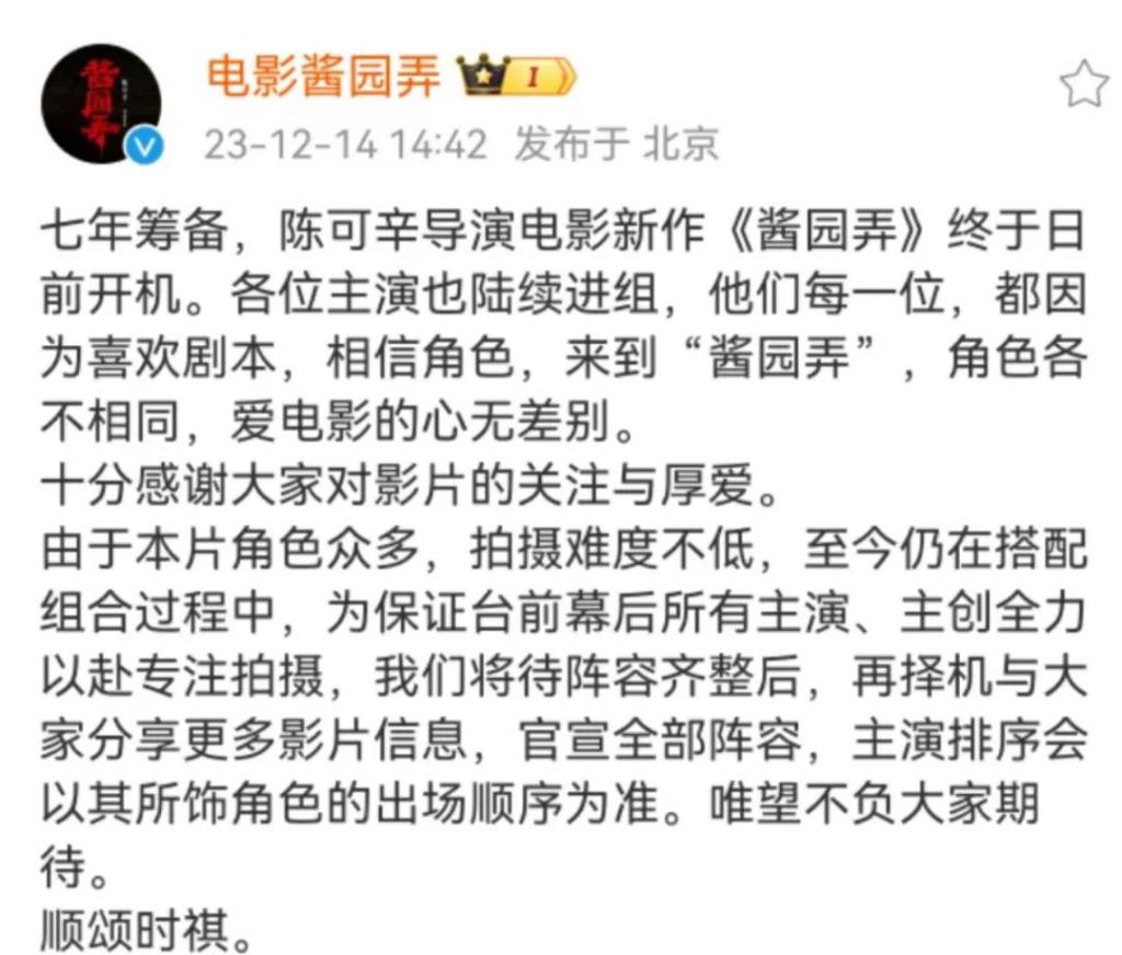 23 年年底,筹备多年的《酱园弄》终于以电影的形式在国内立项备案。